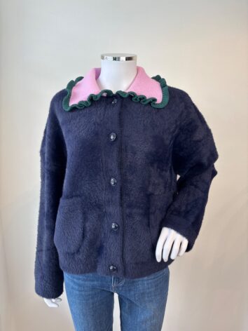 Essential Antwerp Jardener Fuzzy Cardigan Navy