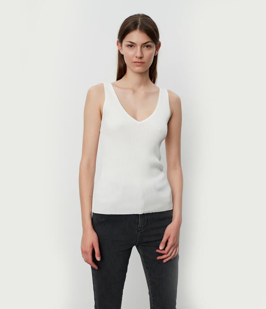 The Ruth top from 2NDDAY is a ribbed knit style in an off-white Jet Stream colourway. Cut with a V neckline and scoop back, this tank-style top has a refined and luxe feel and will seamlessly pair with your favourite pieces already in your wardrobe. For a holiday look, pair with a neutral-toned skirt and laidback sandals.
