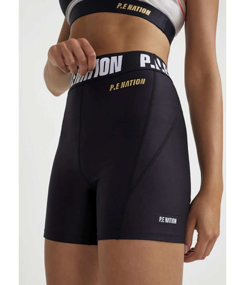 The Agility Short in Black comes as a part of the Together We Move Collection. Cut from a sustainable, recycled fabrication with added stretch properties in a shiny finish for a sculpting fit. Featuring a supportive high-rise woven jacquard elastic waistband and P.E Nation flat rubber logo prints on the hip and side panel. These shorts are ideal for high-performance activities and provide the ultimate coverage and comfort. Add a P.E Nation sweat or perhaps a Ragdoll LA oversized slouchy sweat for a winning active set.