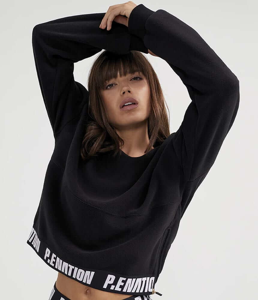 The Agility cropped boxy sweat comes as part of the Together We Move Collection. Cut from midweight polar fleece crafted from 100% recycled material, the Agility Cropped Sweat has a scoop neckline and bold P.E Nation branded elastic on hem for a statement street-sport look. Featuring horizontal front panels and side seam zippers for added style points and individuality. Pair it with the Agility Short for an elevated activewear look.