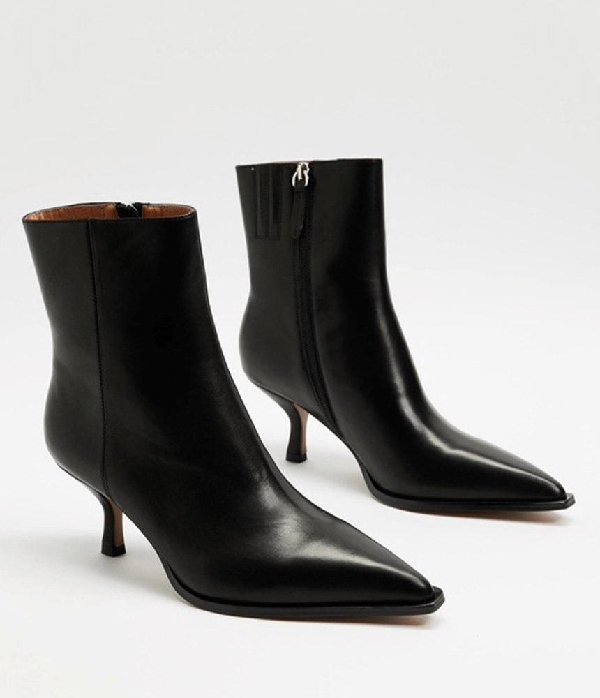 100% leather upper, heel height 6.5cm. This style has an inside zip and a pointed toe.