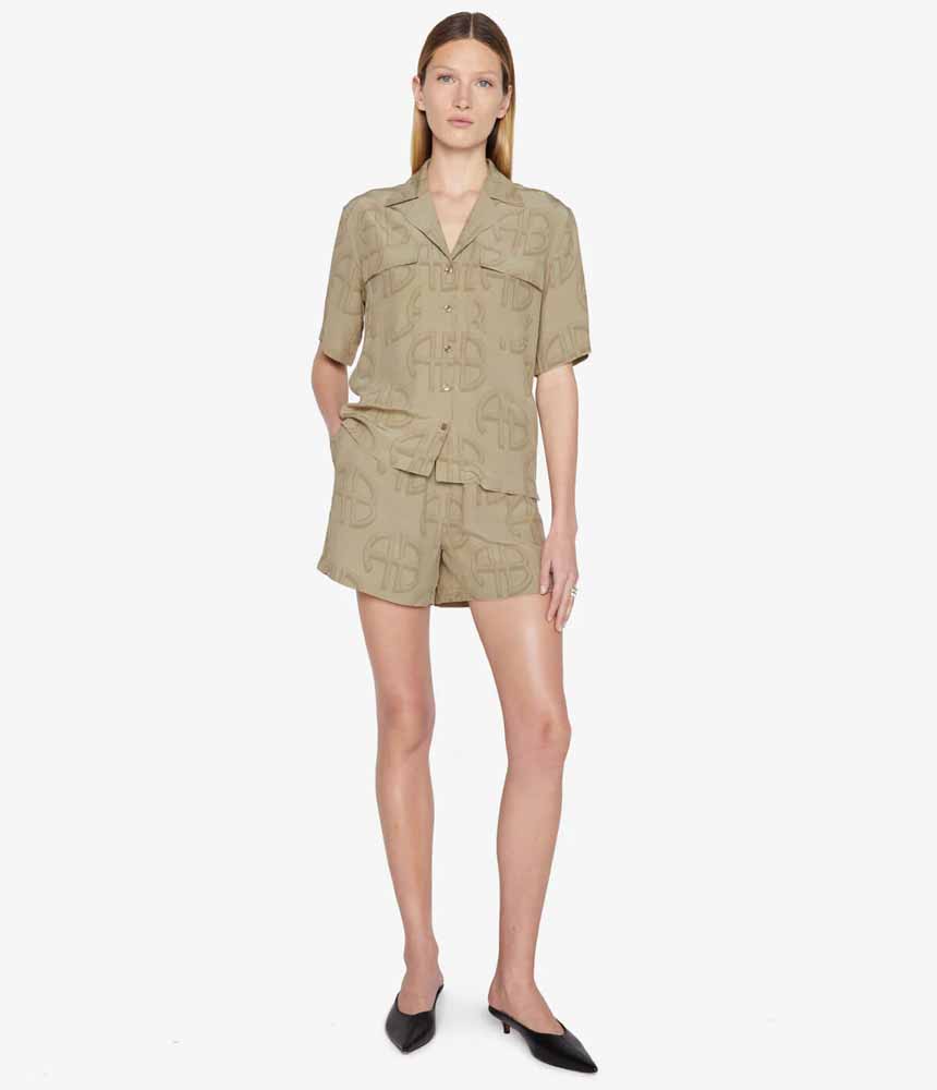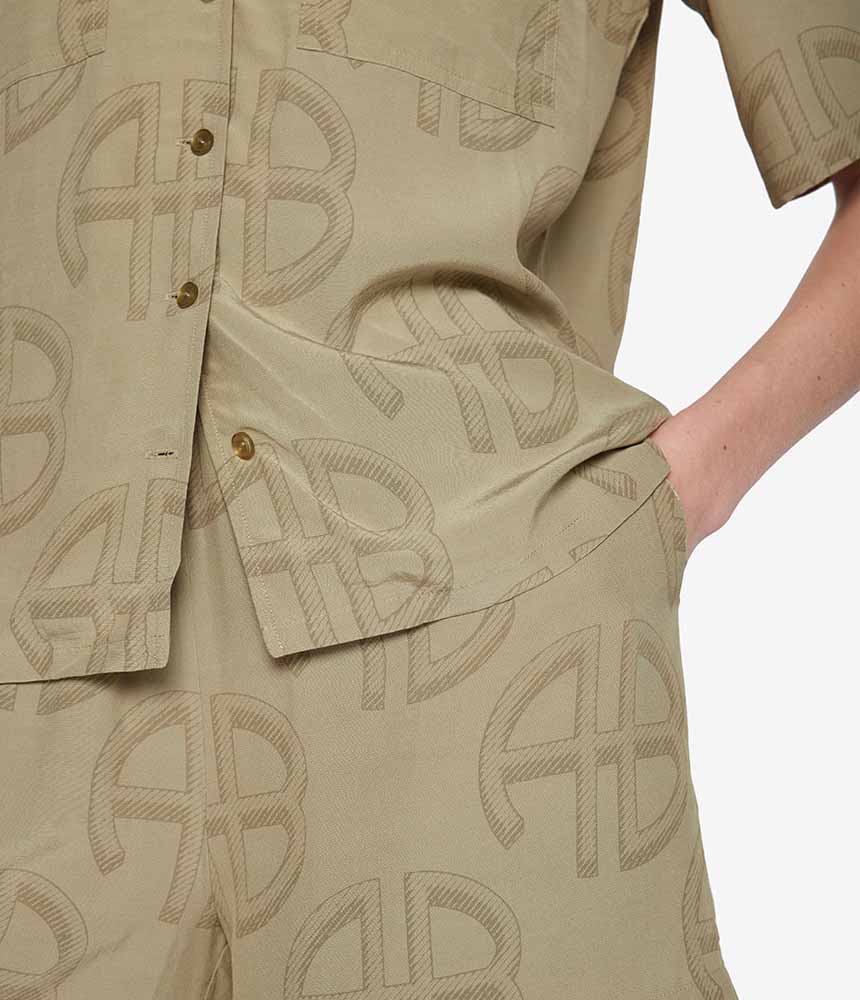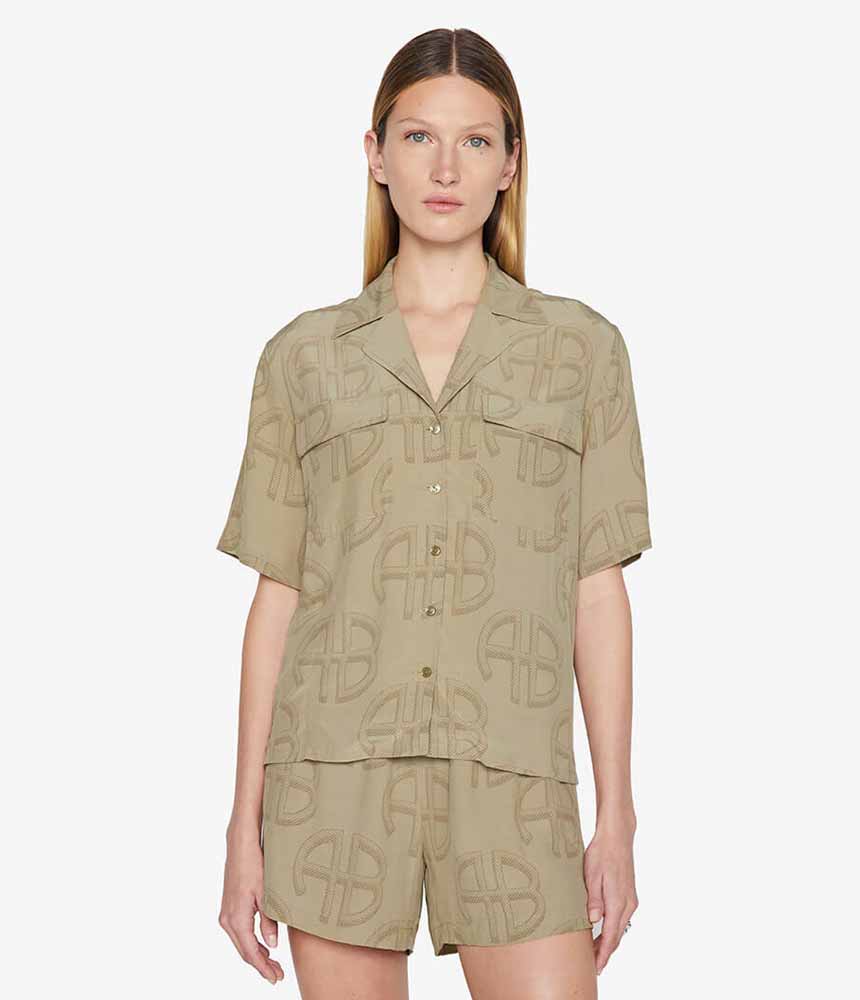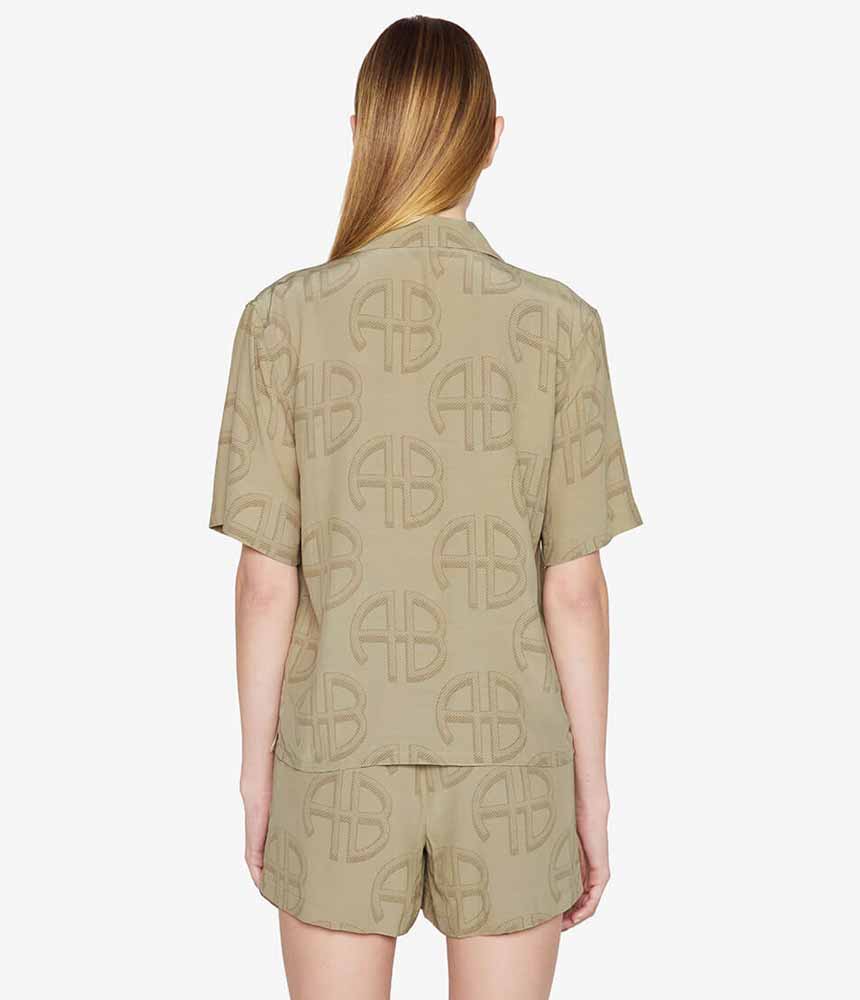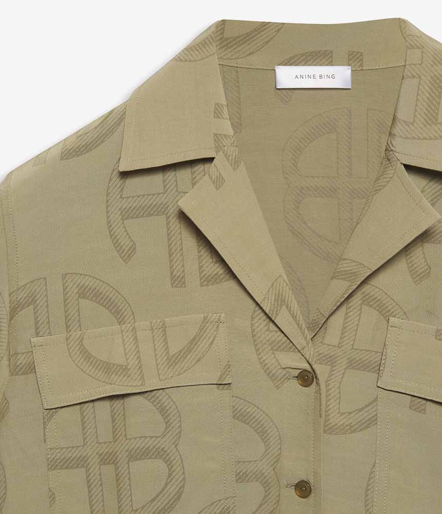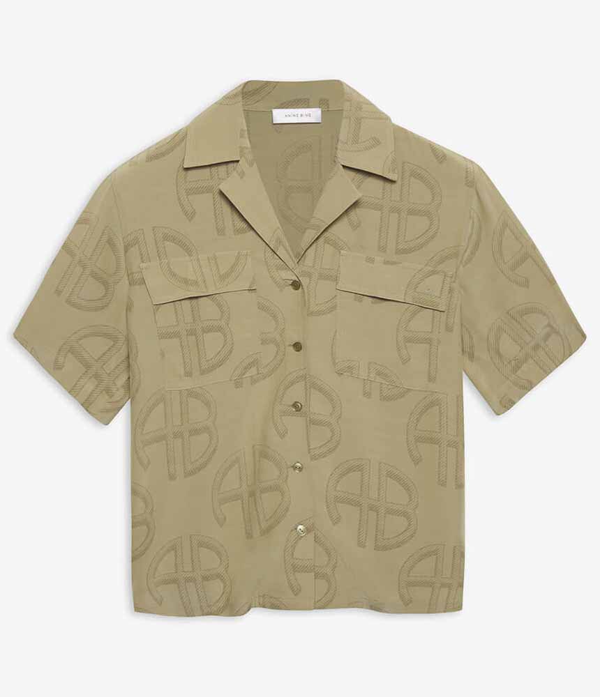 The Austin Top by Anine Bing is a menswear-inspired shirt made from a lightweight viscose-rayon blend in their neutral celadon featuring a tonal, vintage-inspired ANINE BING monogram print. Two functional flap pockets adorn the chest, rounding out its utilitarian construction. Pair the Austin Top with your favourite denim and a neutral chunky boot for a look that will take you through to Spring and beyond.