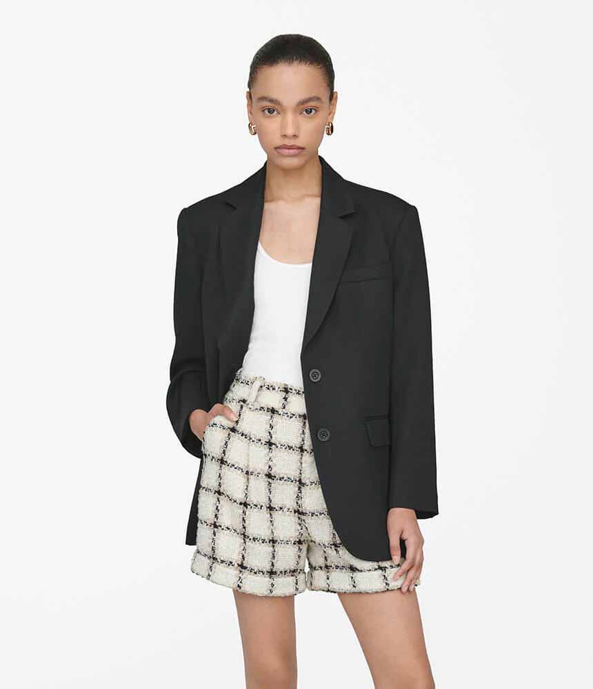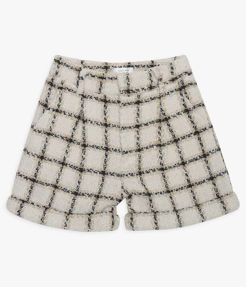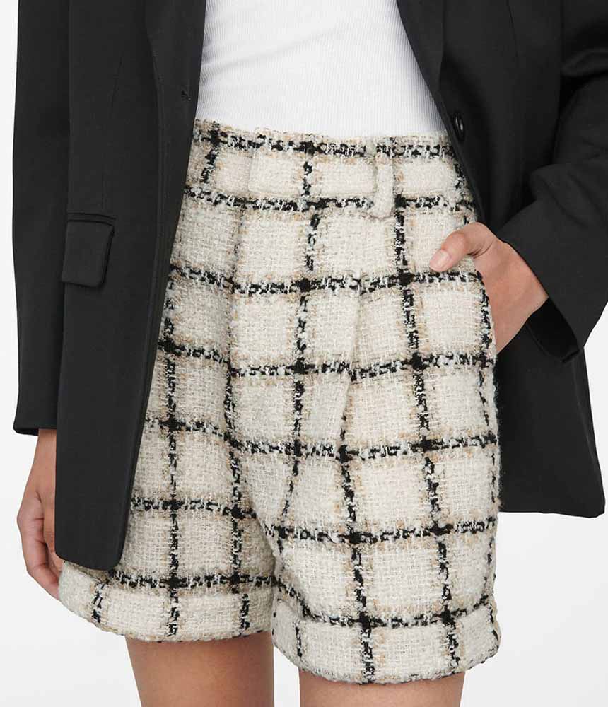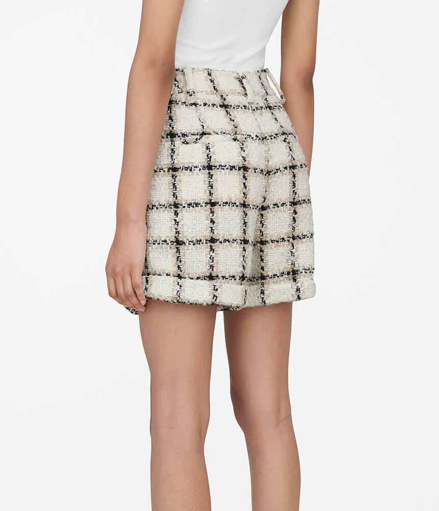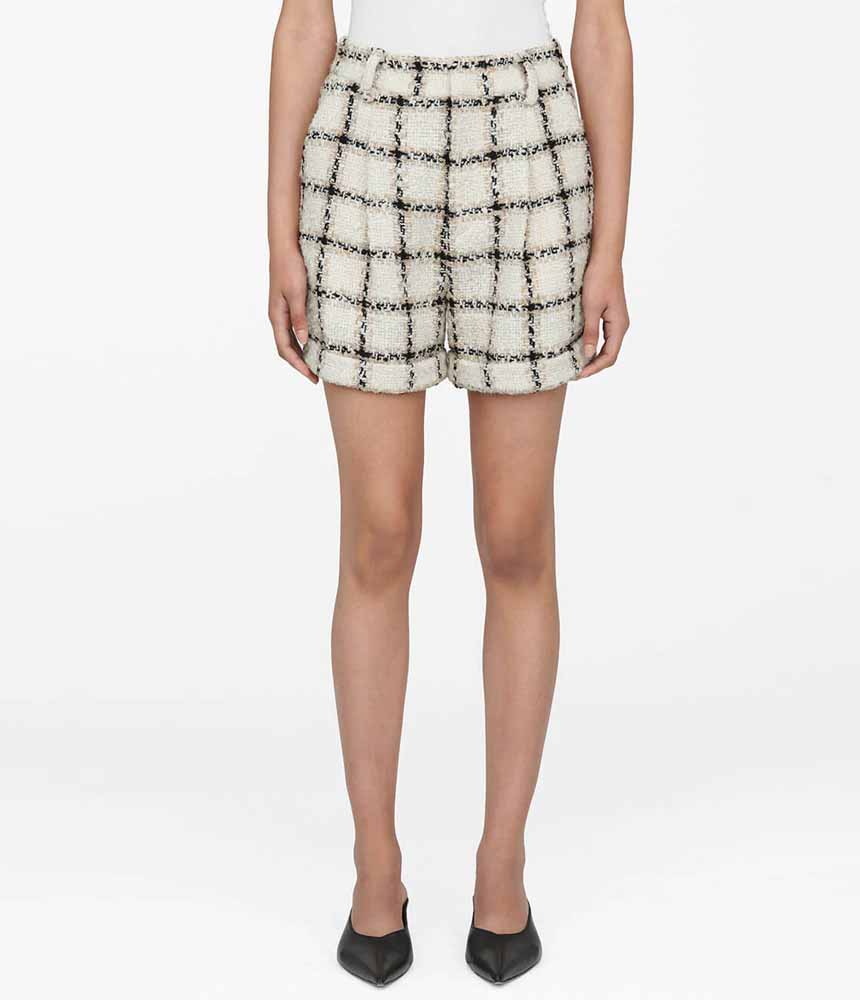 The Becky Short is Inspired by the best-selling Becky Trouser.. Made from a textured wool blend with a neutral, all-over windowpane plaid pattern this versatile tailored short has an optional D-ring belt in matching beige plaid allows for a close, cinched waist. the look. Top off with the matching Adriana Jacket for a new take on traditional tailoring.