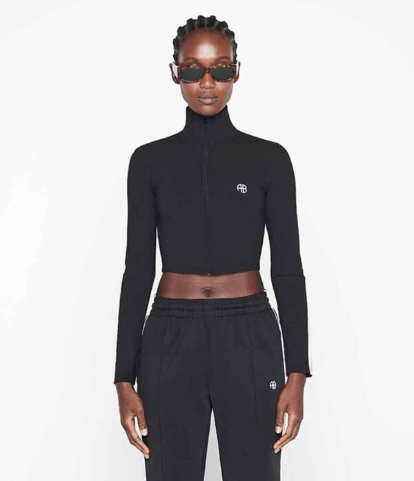 The Devin Jacket from ANINE BING Sport is a zip front, mock-neck style made from their signature stretch-infused performance fabrication that wicks away moisture and dries quickly. A white stripe along each long sleeve serves as a subtle sport-inspired touch influenced by ’90s athleisure. This versatile separate comes finished with an ANINE BING monogram in contrast white at the wearer’s left chest.