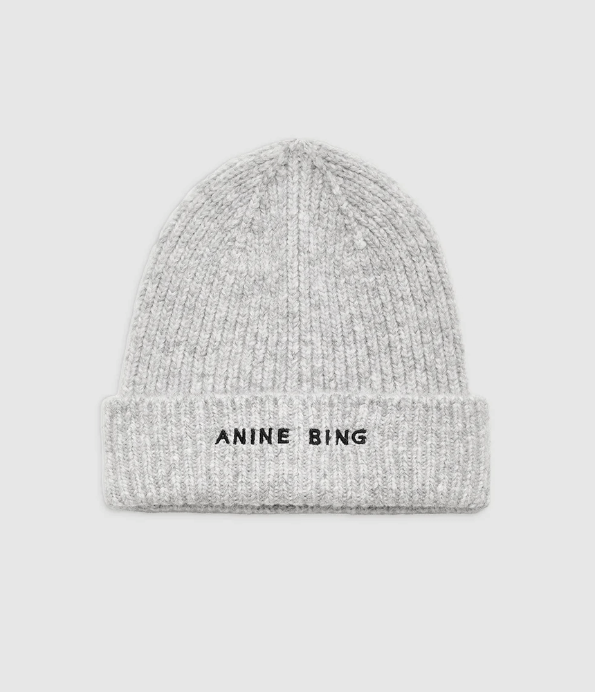 A cold-weather accessory made from a luxurious alpaca-wool yarn with all-over, vertical cardigan-stitch detailing. Its folded brim is finished with embroidered ANINE BING branding.