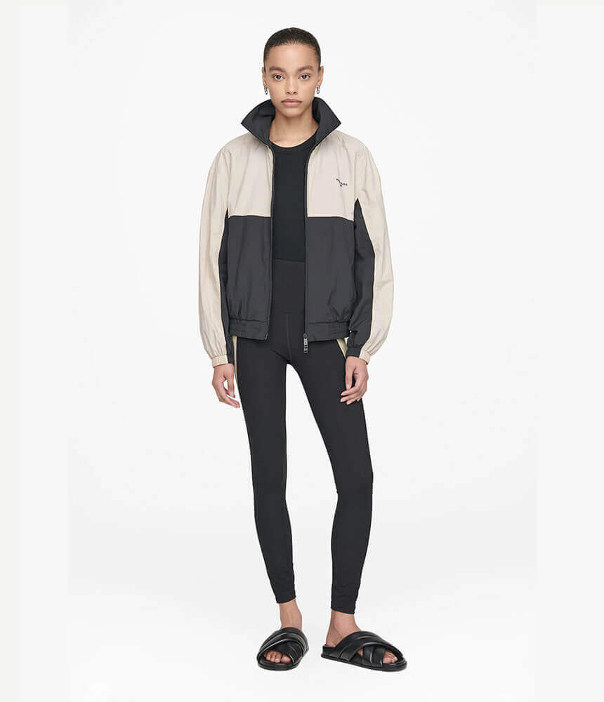 The Emerson Jacket by Anine Bing is a windbreaker-inspired jacket accented with vintage colour blocking in a neutral combination of black and tan. Made from a slightly textured water-repellent nylon fabric and fully lined in performance mesh, this style is both functional and stylish! Finished with embroidered ANINE BING Sport branding at the front and back. Pair with the matching Emerson Jogger and Dina sneakers for an Anine Bing-approved look.