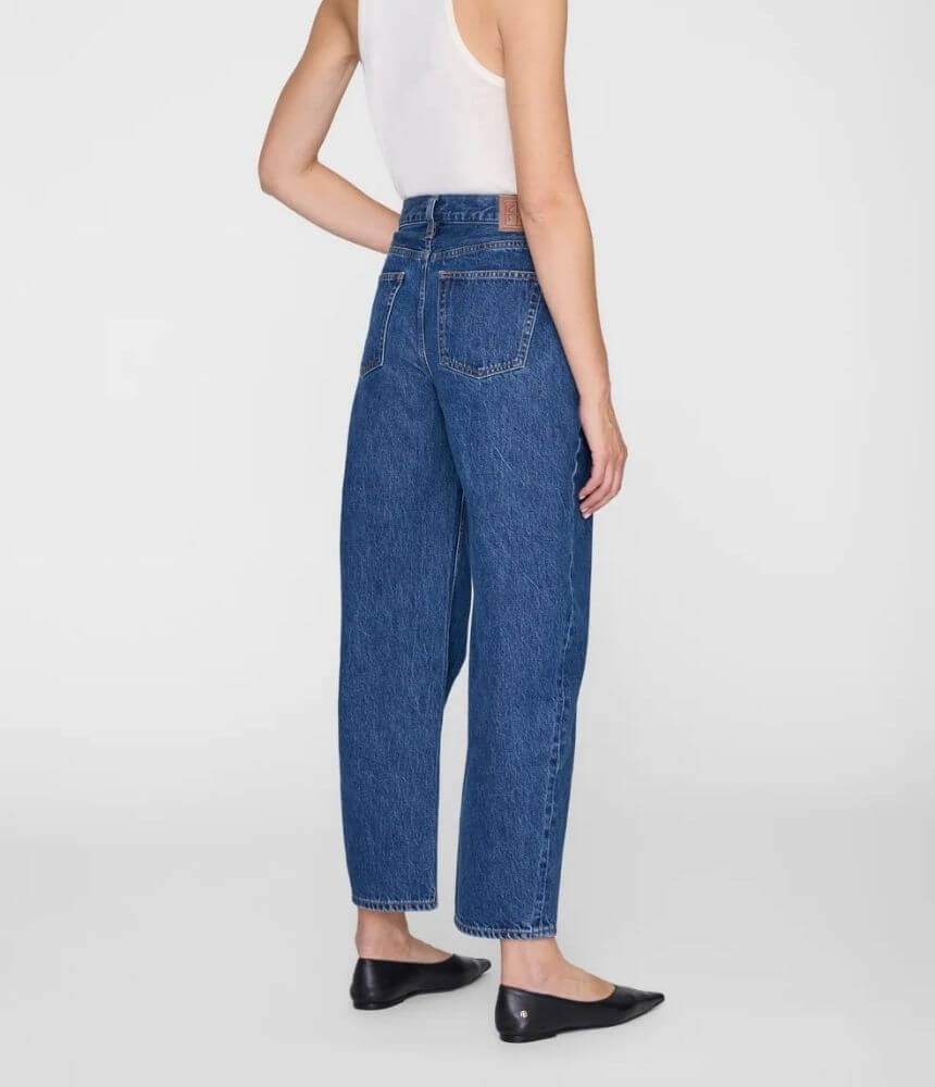 The Fritz Jean features a barrel leg silhouette constructed from midweight cotton denim without stretch in clean indigo.