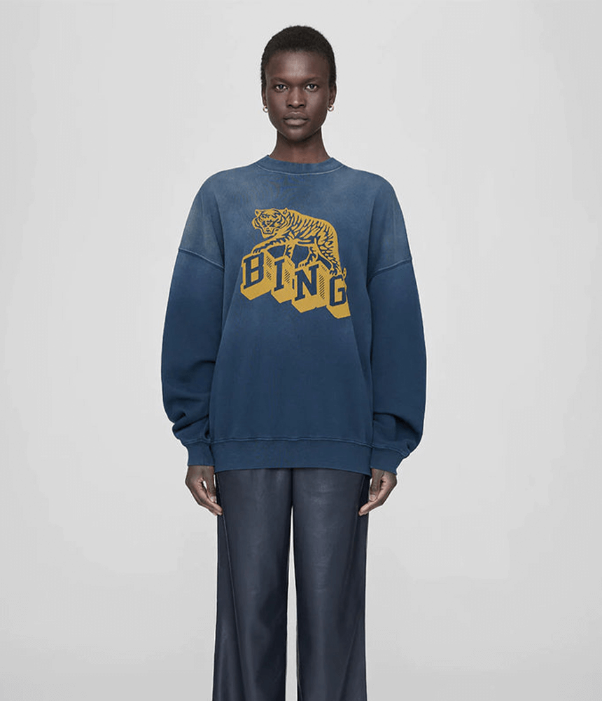 Embrace a distinctively vintage aesthetic with the Anine Bing Harvey Crew Retro Tiger in Washed Faded Navy. This exceptional piece is designed to evoke a sense of nostalgia while offering contemporary comfort.