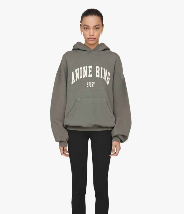 Made from the brand’s signature cotton-fleece blend in a dusty olive colourway, the Harvey sweatshirt is a comfy and cosy oversized hoodie perfect for those off-duty days. The sweatshirt is screen-printed with ANINE BING SPORT across the chest and detailed with a subtle distressed trim along the hood, cuffs and hem for a vintage look. It features a relaxed fit with dropped shoulders and balloon sleeves. Style with Anine Bing Sport leggings, chunky sneakers and finish with a baseball cap.