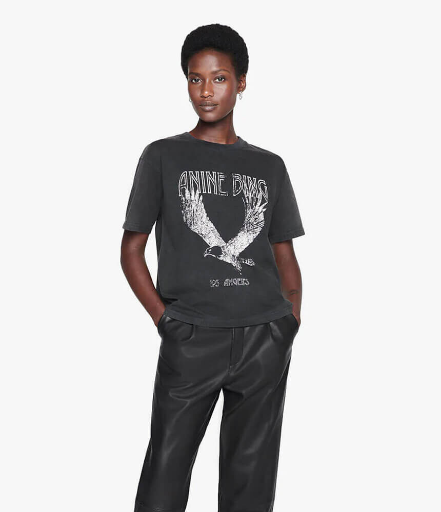 Anine Bing’s best-selling T-shirt fit featuring a new vintage-inspired eagle graphic. The Lili Tee Eagle’s high crew neckline, boxy shape and structured silhouette balance its laid-back look. Made from 100% organic cotton. Please note: This one-of-a-kind item has been garment-dyed for an authentic, vintage-inspired look. No two items are exactly alike. Color or wash variance will occur from one item to the next as a result of this unique design process.