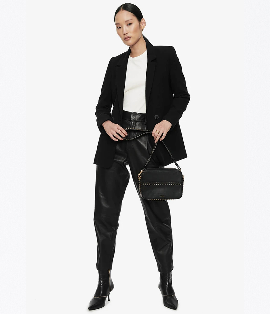 The Madeleine blazer by Anine Bing is one of their best-selling wardrobe staples. This coveted blazer is updated each season for a fresh take. This sleek, classic black colourway embodies sophistication and offers versatility for a femme take on classic menswear tailoring. Style with a faux leather legging and a slogan tee for a look that is unbeatable.