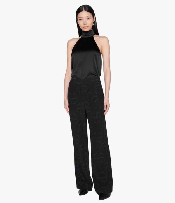 The Owen Pant is an elevated take on loungewear in a soft, rayon-viscose blend updated in a tonal black ANINE BING monogram print. It features an elasticated waistband for an effortless pull-on construction, functional slant pockets at each side seam, and a relaxed, pyjama-inspired silhouette. Pair it with a simple cami or tee for a paired back look.
