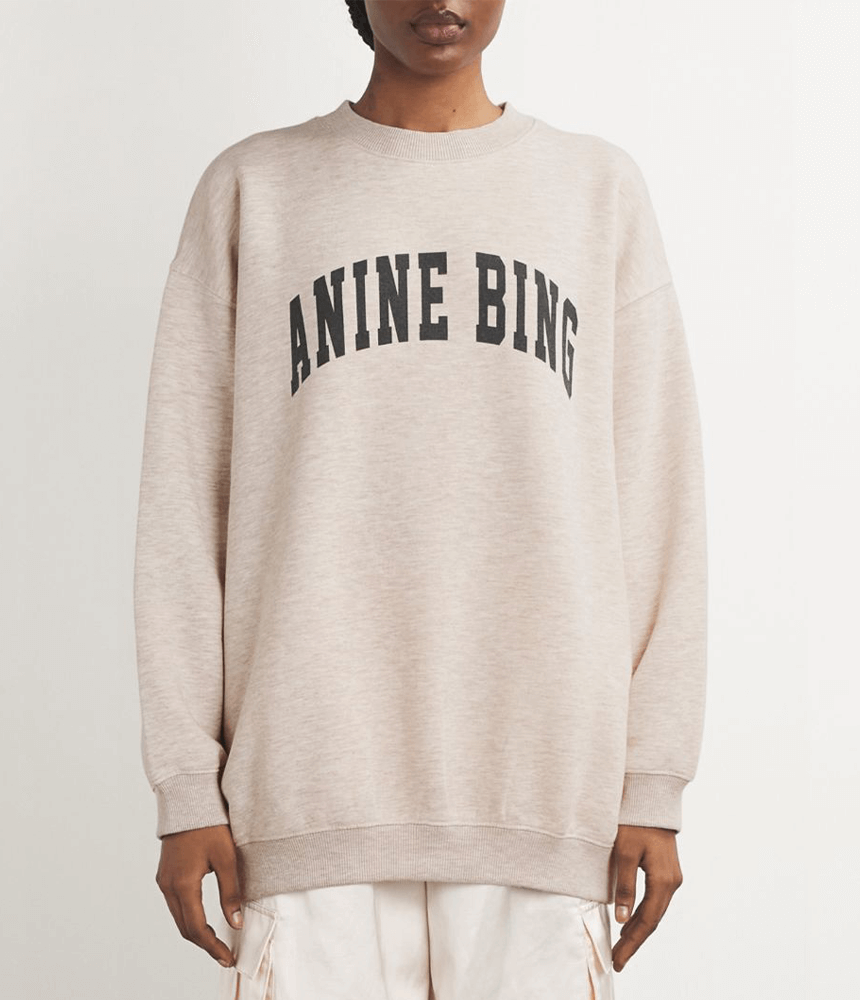 The Tyler Sweatshirt is an oversized crewneck pullover made from midweight organic cotton fleece in oat melange. It features a pigment printed graphic in black collegiate lettering at the chest, rounding out its athletic-inspired look. This style is finished with ribbed trim at the collar, cuffs, and hem. The Tyler Sweatshirt is cut for an oversized fit. Take your true size. fabric: 100% Cotton Machine Wash Made in Turkey measurements: The Tyler Sweatshirt is cut for an oversized fit. Take your true size.