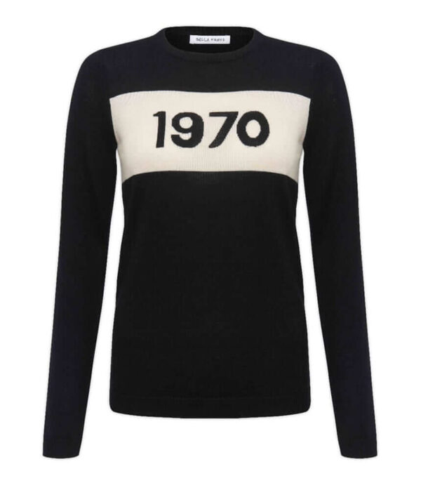 This, now iconic, Bella Freud knit was originally inspired by the early 1970s New York punk scene and Patti Smith. This super cool piece features the classic ‘1970’ intarsia knitted across the front. A firm favourite of style icons such as Kate Moss and Alexa Chung, this beautiful monochrome piece will instantly up your knitwear game! Wear your coveted Bella with denim through to leather for a winning look.