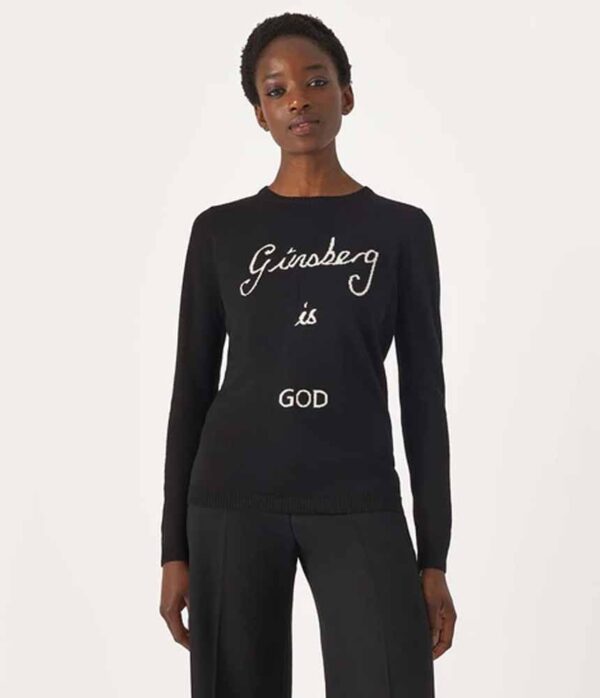 This super cool jumper from iconic British designer Bella Freud has the intarsia ‘Ginsberg is God’ on the front and ‘Godard is Dog’ on the back. A firm favourite of style icons such as Kate Moss and Alexa Chung this pure merino wool jumper will give your wardrobe an instant modern style update. Wear your beloved Bella with vintage denim jeans or a pair of faux leather leggings for a triumphant look.