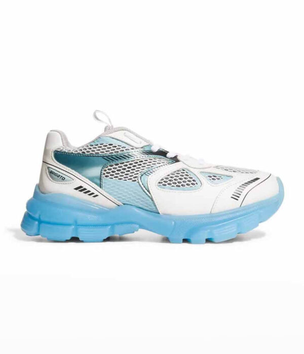 Inspired by running shoes throughout the 90’s, the Marathon Runner is made with an exaggerated sole, blowing up the features of a typical running shoe. Decidedly technological, the retro runners upper is composed of calf leather and a wide-weave mesh, protected by a PU transfer. This style features blue overlay panels and detailing, finished with a baby blue frosted rubber chunky sole, Style with a pastel palette for ultimate summer vibes.