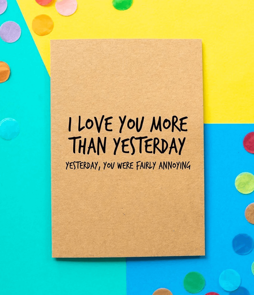 A tad left of centre, cheeky, ever so slightly offensive or a little off. Bettie Confetti cards are guaranteed to make you laugh by flying in the face of conventional greetings cards with just enough passive aggressive sentiment to put a smile on your face. All cards are printed and hand finished in the UK and individually packaged with a matching 100% recycled envelope.
