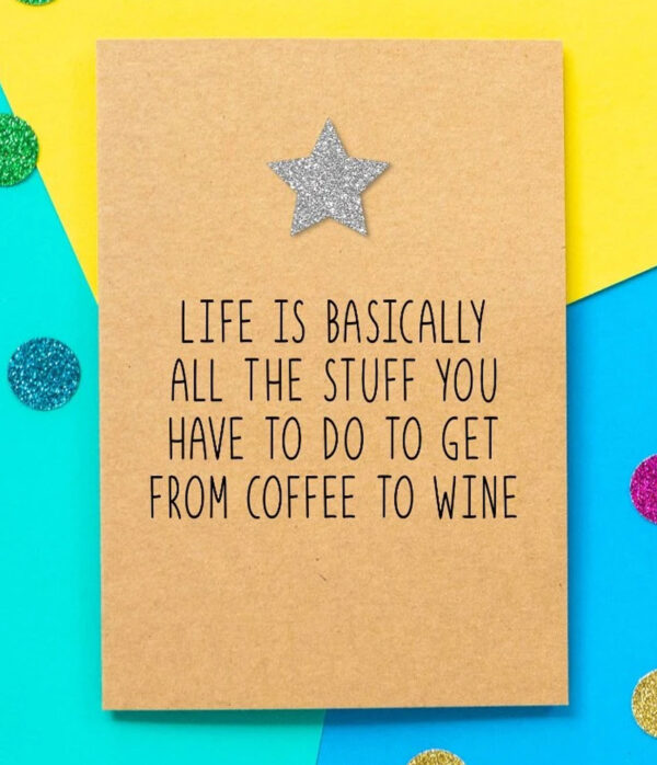 From the early morning espresso to the evening merlot, this funny birthday card is perfect for the moments in between.