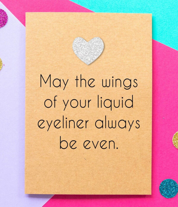 The ultimate in make up goals, this funny card is perfect for the flicked wing addict.
