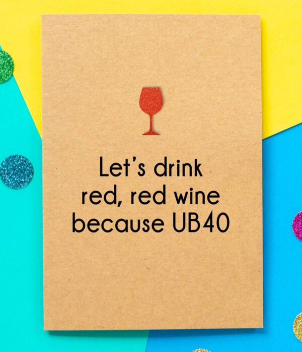Red red wiiiiiiiiiineeeeeeeeee, stay close to me. This funny 40th Birthday Card is perfect for anyone that’s ever sung it like that after a few glasses.