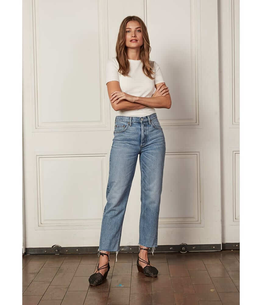 The Tommy is a high waisted rigid straight jean. It is in the perfect clean medium light eco wash. This jean includes Recycled Cotton reducing its carbon footprint and reducing water usage.