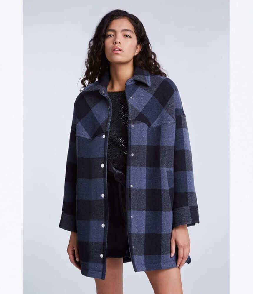 This gorgeous shacket by Set Fashion is a fresh outerwear essential that styles effortlessly with all shades of the denim rainbow. This style merges the casual look of utility wear and is crafted in an Italian wool rich fabric in a stunning checked graphic pattern. We would style with a simple tee and denim for a look that is impossible to beat this season.