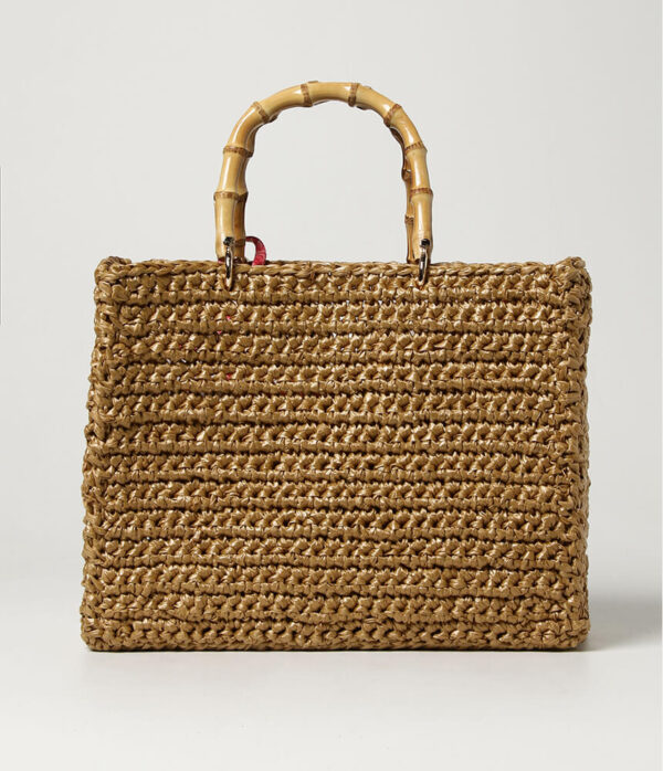 The Luna Tote bag from Chica, handmade in Tuscany, is this season’s hottest accessory! This super sturdy, structured tote bag is constructed with a woven crochet design for a complete bohemian-feel and finished with curved bamboo top handles for a designer twist. Complete with a unique printed internal pouch, this piece is one of a kind… just like you!