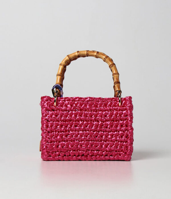 The Meteora Mini bag from Chica, handmade in Tuscany, is a cutesy box bag style that packs a punch! This super sturdy, mini bag is constructed with a woven crochet design for a complete bohemian-feel and cast in bold Fuchsia for those who aren’t afraid to make a statement. Complete with a unique printed internal pouch, this piece is one of a kind… just like you!