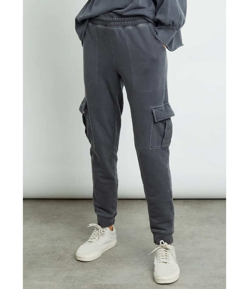 A wardrobe staple. The Dawson joggers by Rails are an elegant and comfortable design. Cut in a lightweight, vintage terry with a washed pigment dye for added depth of colour. These classic black sweatpants feature functional cargo pockets with hidden button closure, ribbed cuffs, elastic waistband with inner drawcord, and tapered leg. Amazing for when you want to lounge in the house or simply go about your day in the most comfortable fashion possible.