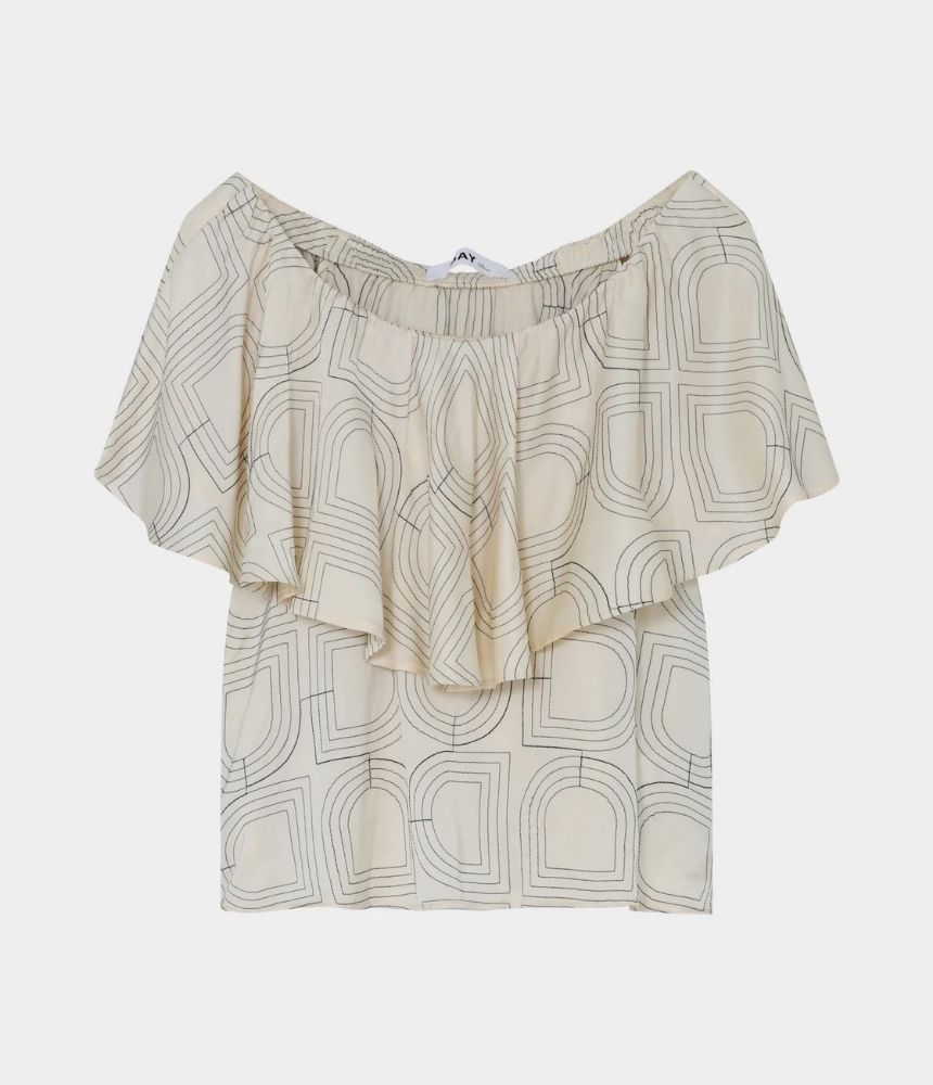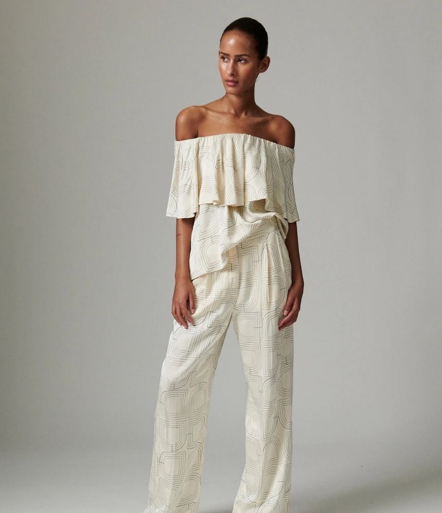 Crafted from a luxurious viscose blend (LENZINGâ„¢ Viscose and viscose), the Hon top has a fluid drape that feels breathable and comfortable , perfect for everyday wear or elevated daytime styling. The standout feature is the elasticated off-the-shoulder yoke that sits across the chest and back, giving you multiple ways to wear it, from relaxed and casual to more polished and feminine.