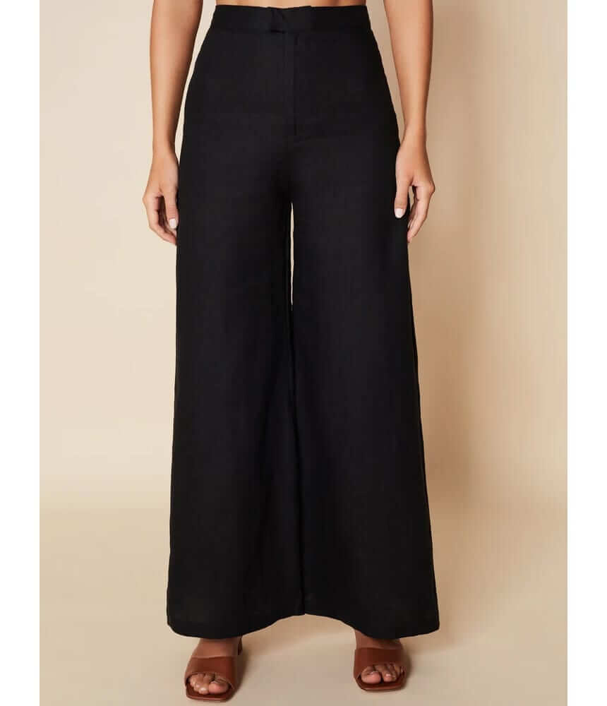 The Duda Pants are crafted in a beautiful hand-dyed classic black, lightweight linen. These pants are a timeless staple, designed to be paired back with anything in your wardrobe. Fitted on the waist and flared in the leg,  They feature a concealed front zip and hook and eye. The Linen fibres are sourced, grown and cultivated in Normandy, France, following the European Flax® Standard making this style gentle on the environment.