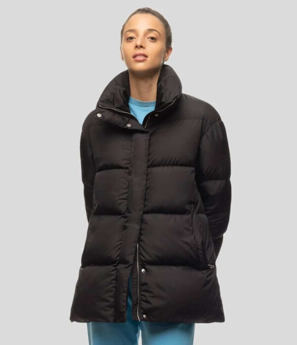 Duveticas Atik quilted bodywarmer features an ultralight design, giving warmth without weighing you down. It has a medium-length silhouette, tighter at the waist for a feminine touch and is made with a matte nylon fabric and a glossy interior lining which are both waterproof. Zip closure and detailed with side vents decorated with black logo tape. Atik also has practical external and internal pockets and a voluminous high collar, to protect you from the cold in a welcoming way. This classic and versatile look will be your best investment this coming Winter.