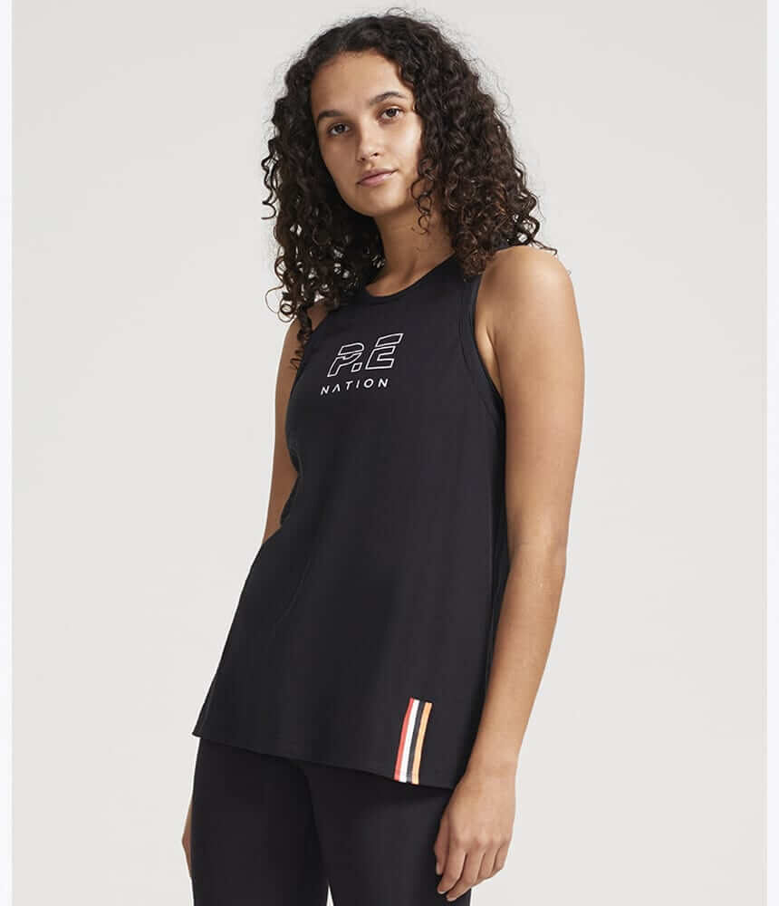 Keep your workout looking classically active in the P.E Nation Baseline Endurance Tank. A monochrome tank with a signature P.E Nation logo print across the centre front and a stripe logo at front hemline. Crafted from a super soft high twist organic cotton fabrication, offering a long-line relaxed fit, and a racerback design for increased freedom of movement making this tank perfect for your next active session. Switch it up and half tuck it into the Endurance Leggings for a super stylish gym look.