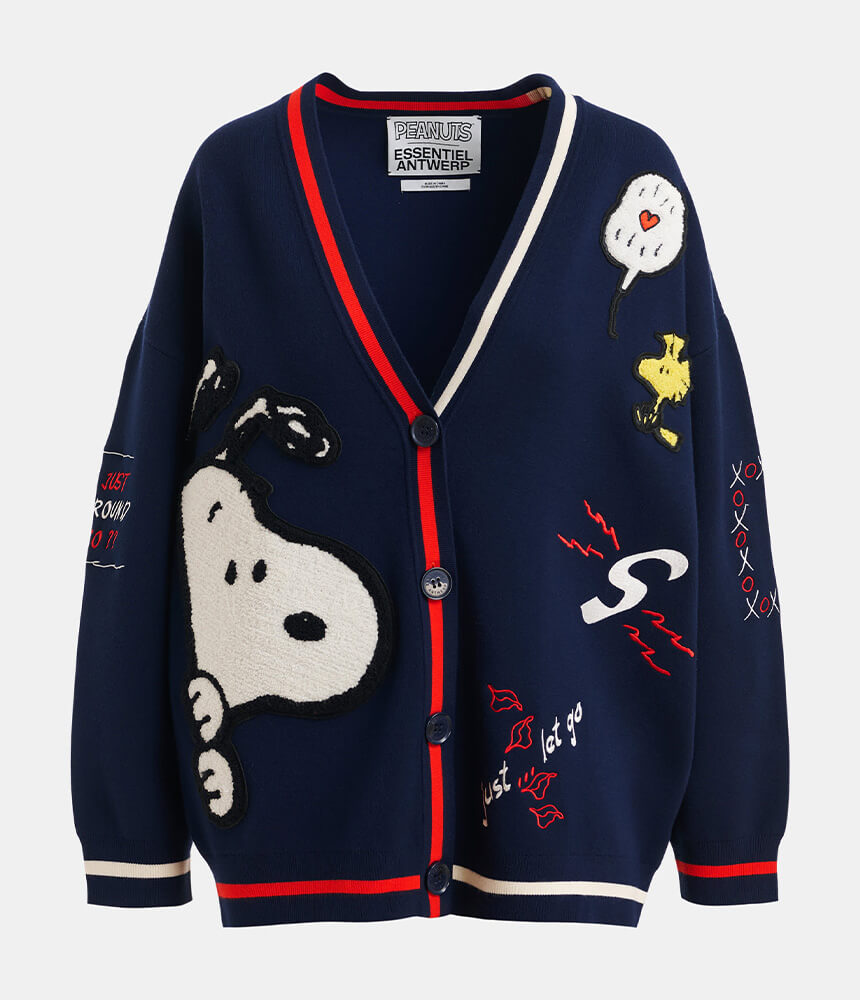 The Essentiel Antwerp Jaseball Snoopy Embo Cardigan in Patriot Blue brings a softer, more elevated feel to everyday layering. Cut in a deep blue tone, it feels clean, versatile and easy to style, while the subtle Snoopy embossing adds a quiet point of interest.