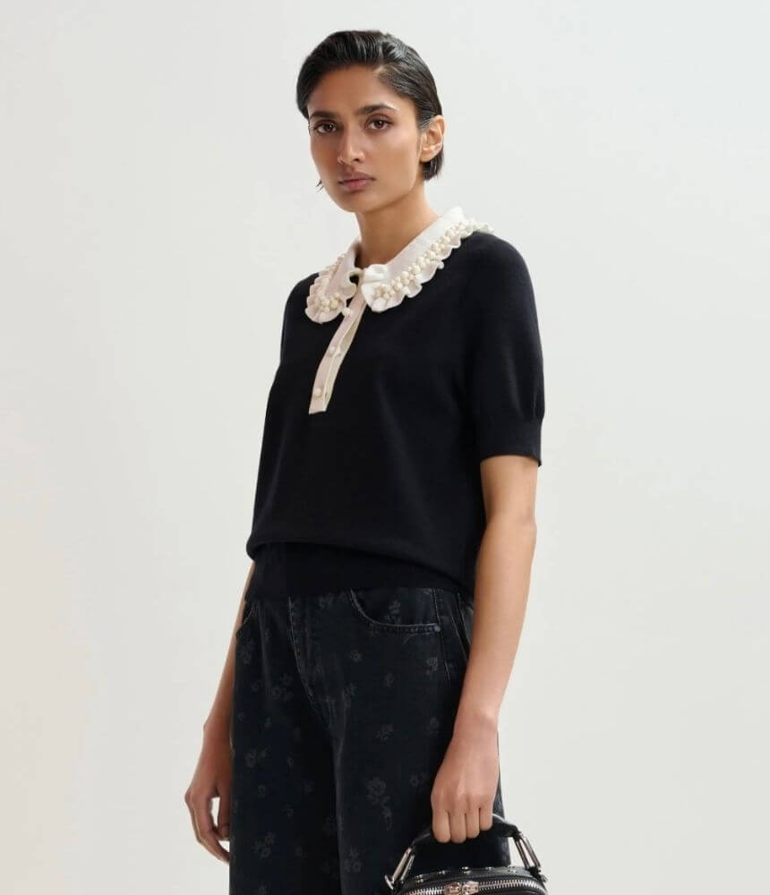 Essentiel Antwerp Jambers Pussy Bow Collar Shirt in Bright Sky