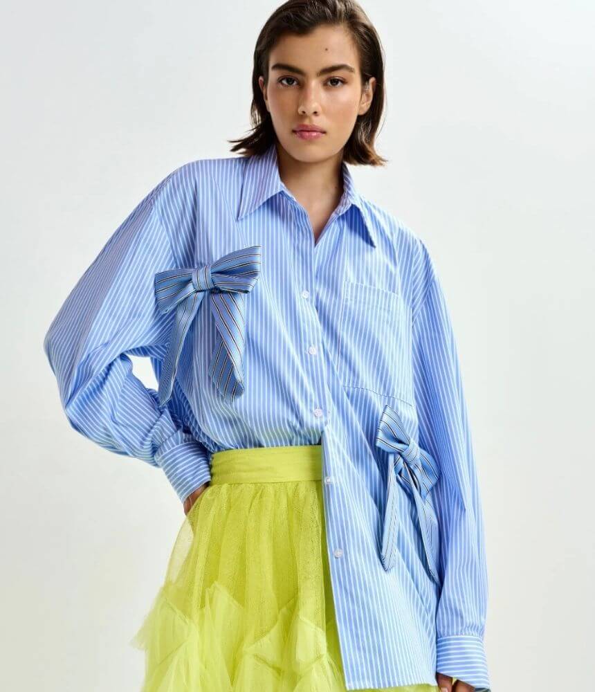 Essentiel Antwerp Jambers Pussy Bow Collar Shirt in Bright Sky
