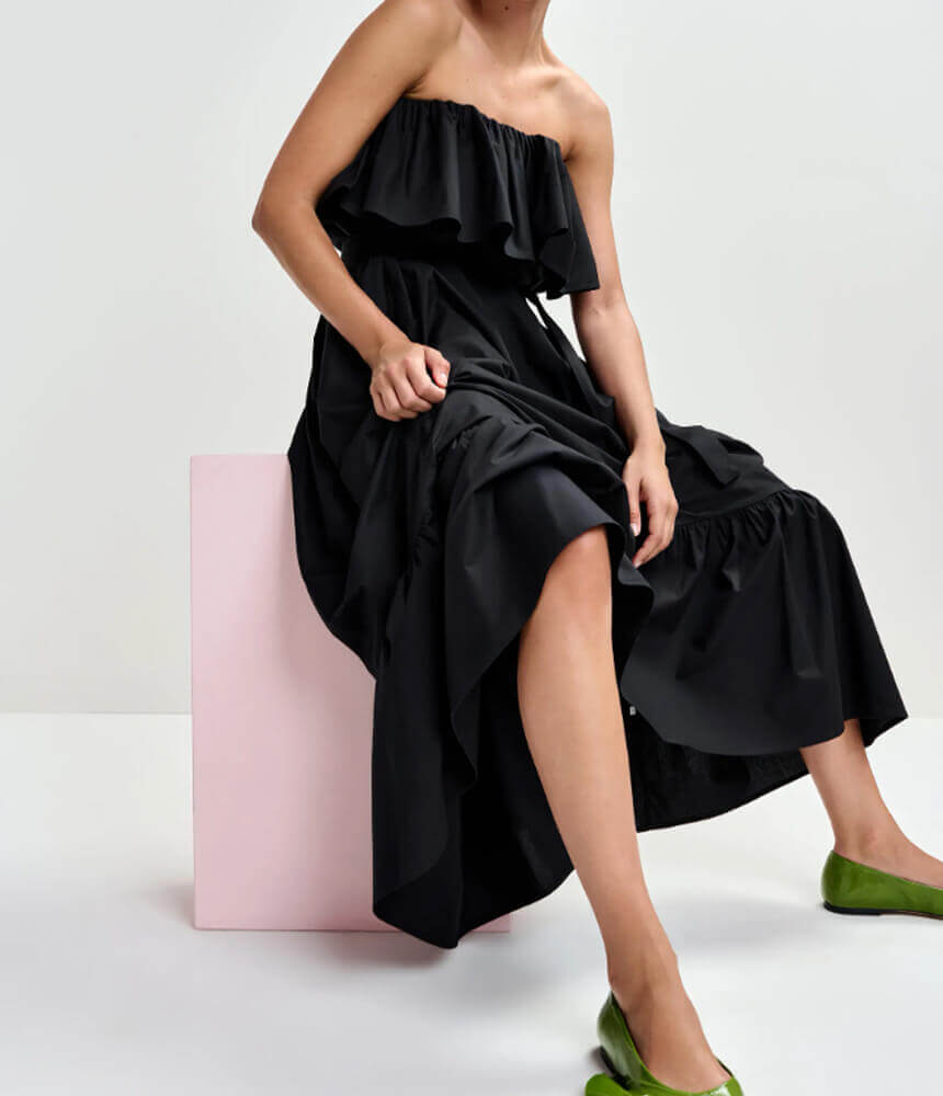 Essentiel Antwerp Joyce Belted Ruffle Dress in Black