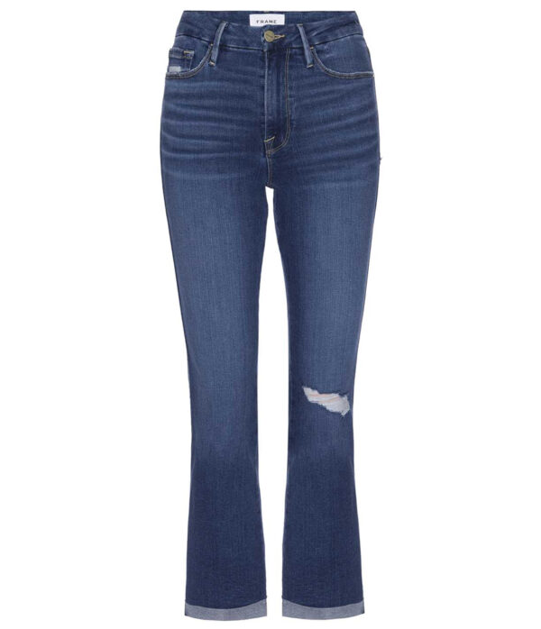 A FRAME best-selling fit. These high-rise jeans are crafted in rich indigo stretch cotton with ripped detailing and feature an on-trend cropped mini boot cut silhouette tapering out at the knee into a slight kick at the turned up hem. These jeans are the perfect addition to mix up your everyday denim. The possibilities are truly endless.