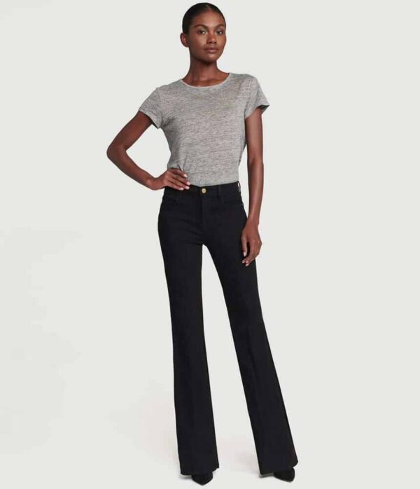 Le High Flare by FRAME put a decidedly fresh spin on the classic 70s silhouette, These flattering high-rise jeans are cut from ultra soft, super stretch denim. This stunning pair are form fitting through the hips and thighs, kicking out into an easy flare below the knee. We would style them with everything from sneakers to sleek ankle boots.