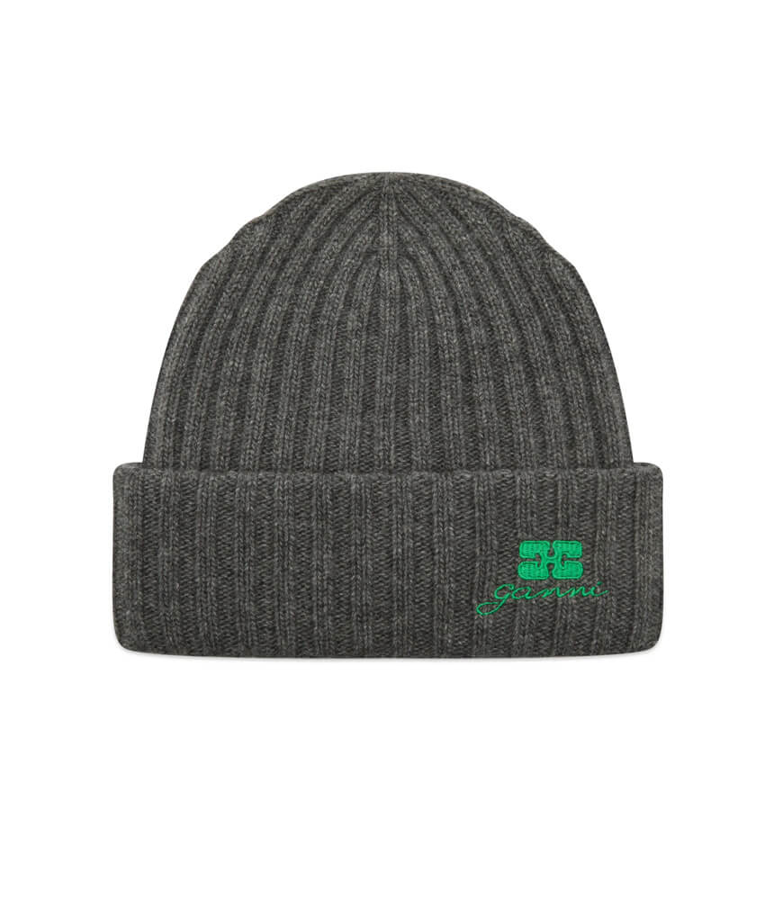 Ganni Future Wool Knit Beanie in Charcoal Grey