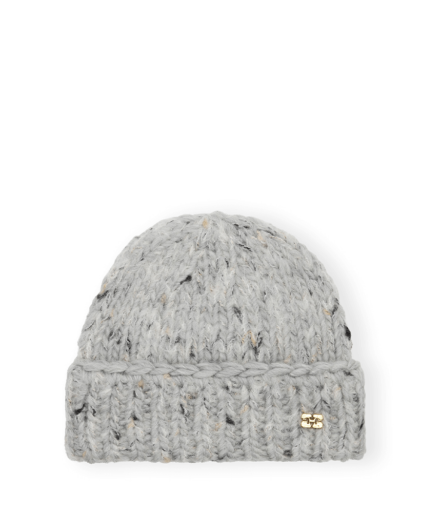 Ganni Structured Ribbed Beanie in Paloma Melange