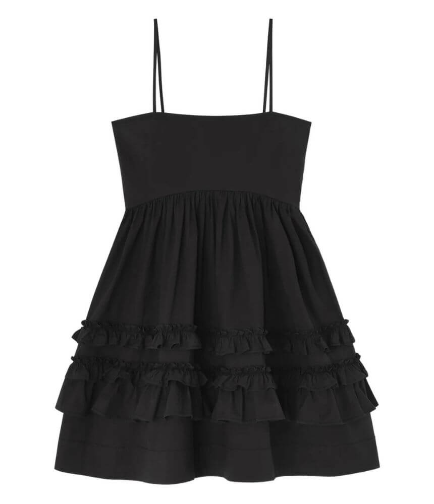 Ganni Satin Cloque Sleeveless Peplum in Black