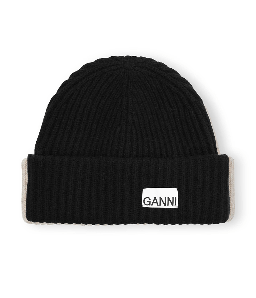 This Oversized structured Rib Knit Beanie features a GANNI logo and is made from a blend of recycled wool.
