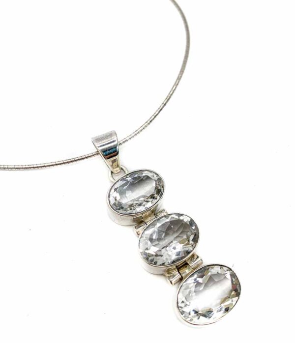 A stunning collar crafted in stolid sterling silver and ‘crystals’, most likely quartz. A perfect blend of contemporary styling with a hint of glamour to take you stylishly through the year.