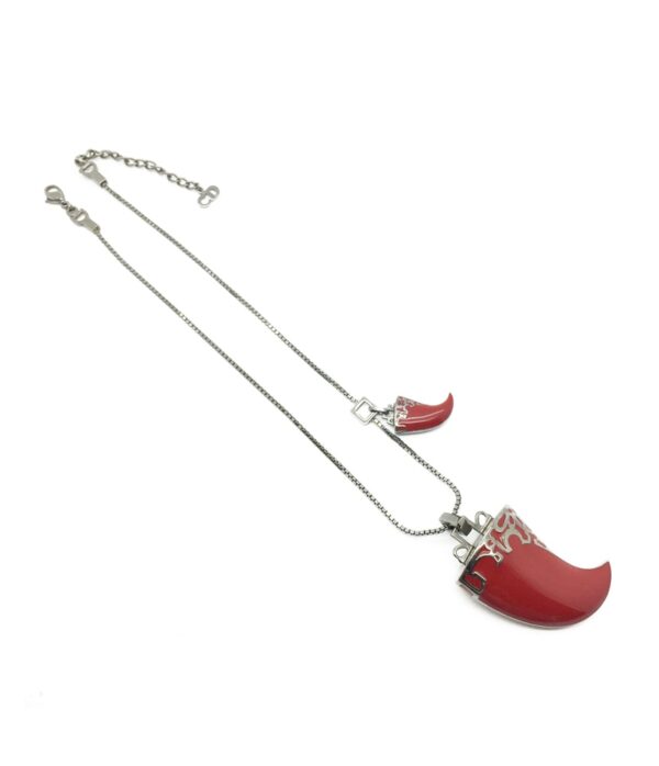 Straight out of the 2003 Dior collection, this John Galliano Claw Necklace is fab and funky. Crafted from blackened silver tone metal and deep red glass enamel, the main events are striking ! A wonderful duo of claw shaped pendants, featuring Dior word patterns in uber stylish blackened silver tone. Measuring approx. 37cm at it’s shortest fastening and approx. 42cm at it’s longest, this necklace carries the iconic CD hangtag and is brought to you in very good condition without damage or repair. Uber groovy Dior. Bring out your inner rock goddess!
