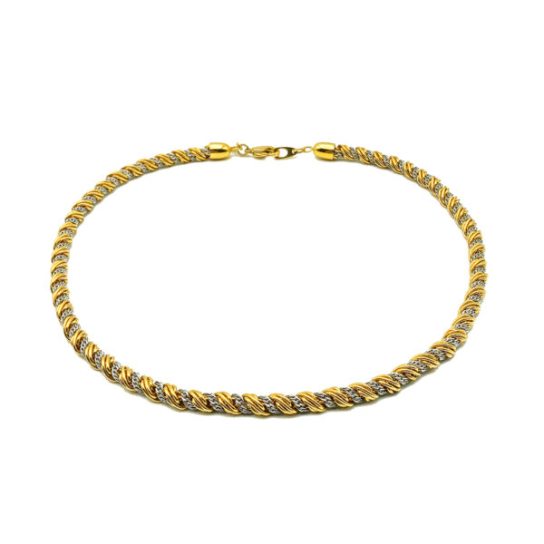 Ramp up the chain style with this super chic double rope twist necklace by Monet. Crafted in gold plated metal with silver tone metal. In very good vintage condition. Fabulous quality and a totally timeless classic
