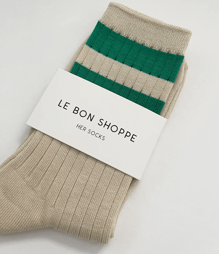 Introducing Le Bon Shoppe’s Her Varsity Sock in Green – a playful yet sophisticated addition to your wardrobe that effortlessly combines comfort with style. Elevate your sock game with this timeless piece that’s destined to be a go-to classic, ensuring you can buy now and keep forever.