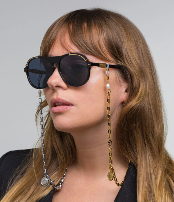 Inspired by the contrast of day and night, our Luna chain beautifully contrasts silver and gold tones, but the devil is in the details. Look at the pendants on either side, and you’ll notice one’s the sun and the other is the moon. Wear the chain on your glasses, or remove the adjustable silicone straps and wear it as a necklace – that’s right: it’s two accessories in one.