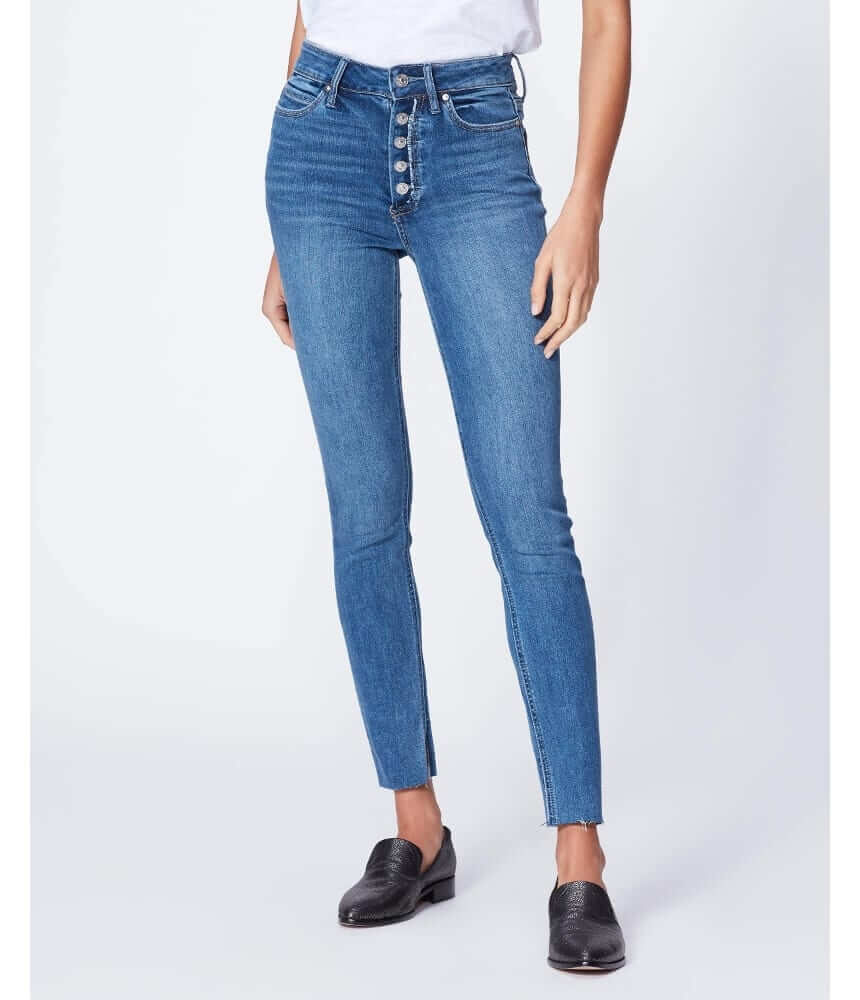 Margot proves that the devil is in the detail. This ultra high rise, Spring statement pair by Paige Denim feature fraying at the fly and inseam and are finished with a super-faded, light-wash. Crafted in their Transcend vintage denim for maximum stretch and comfort. This style has a new kind of vintage attitude and will fast become your perfect skinnies to style with simple tees and heels.