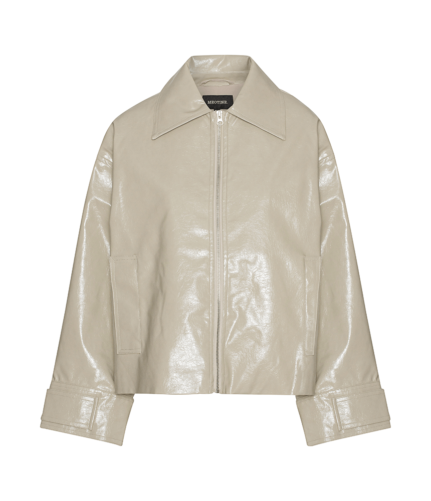 The Andy jacket is a zipped, jacket in a cropped silhouette made in patent vegan leather. It is shaped to an oversized fit with dropped shoulder and wide sleeves. The jacket is designed with two hidden front pockets, cuff details and metal zipper in front.